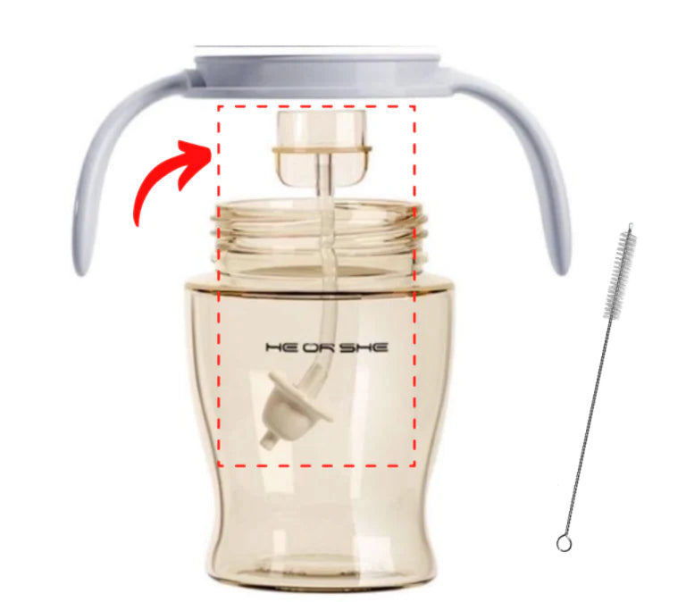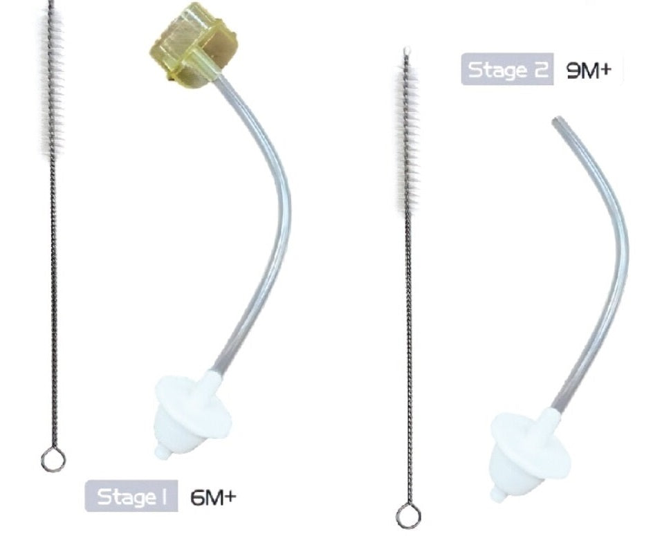 連接器和加重吸管旨在讓寶寶以任何舒適的姿勢喝水。 也是為了防止寶寶喝水嗆到。
